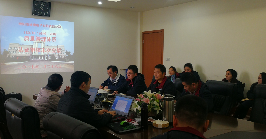 這次審核專(zhuān)家分成兩個(gè)小組開(kāi)展了連續(xù)兩天的審核,對(duì)公司的質(zhì)量管理體系建設(shè)成果給予充分肯定。在審核末次會(huì)議上,審核組專(zhuān)家正式宣布:綿陽(yáng)市維博電子有限責(zé)任公司的TS16949質(zhì)量管理體系策劃充分、運(yùn)行有效,符合IATF認(rèn)證規(guī)范和ISO/TS 16949:2009標(biāo)準(zhǔn)要求,推薦注冊(cè)ISO/TS 16949:2009認(rèn)證證書(shū)。