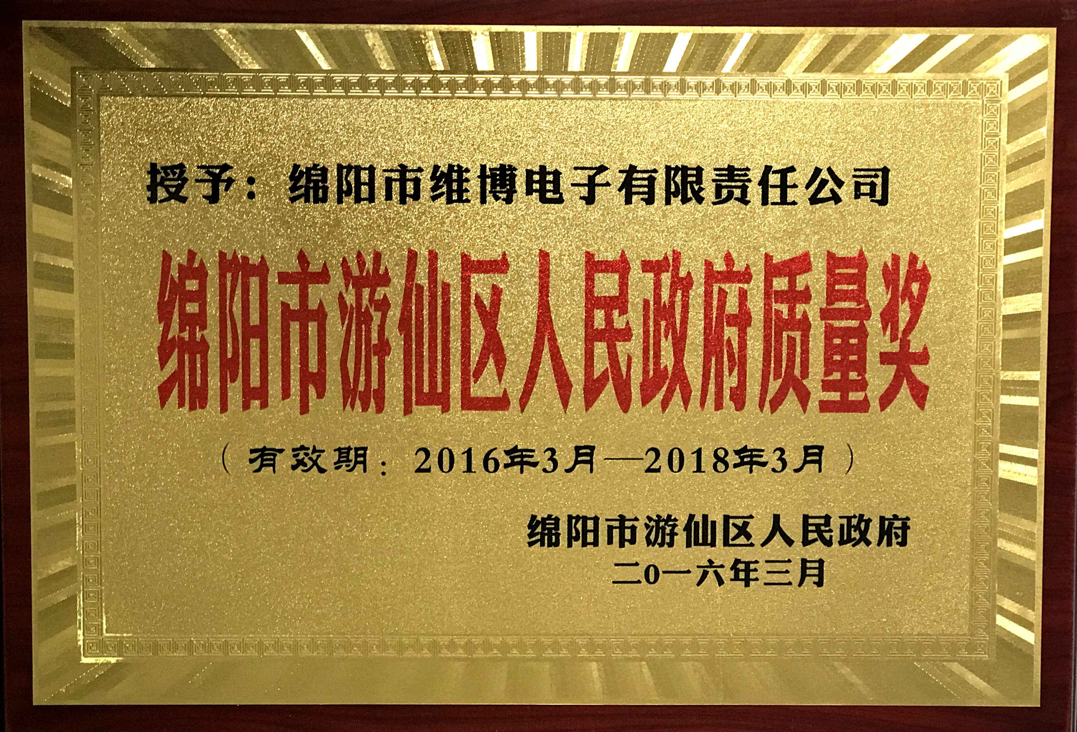 游仙區(qū)人民政府質(zhì)量獎